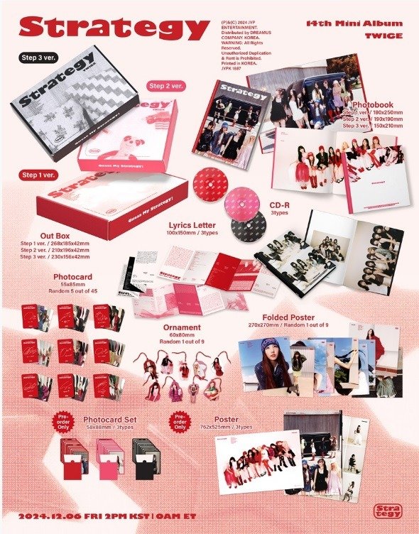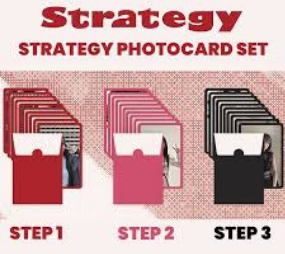 Álbum Strategy Versión 3 y además el set de photocards solo conseguible comprando el álbum en PRE VENTA. Es un set de 10 photocards: 9 individuales y 1 en grupo.